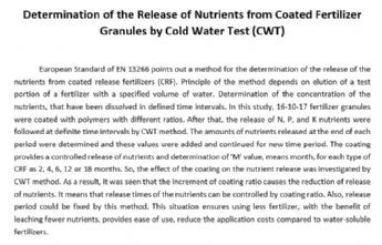 Determination of the Release of Nutrients from Coated Fertilizer Granu..